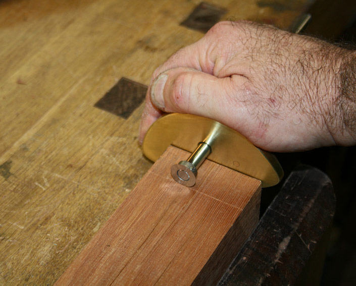 One should mark mortices and tenons from the same gauge, working from a reference face. In this regard, the single flaw of the Kinshiro is that that are not suited for marking mortices that are set back from the edge of a leg ..