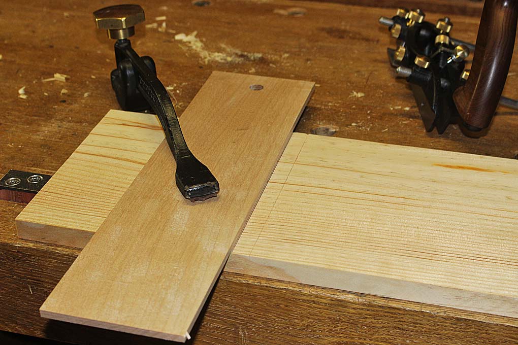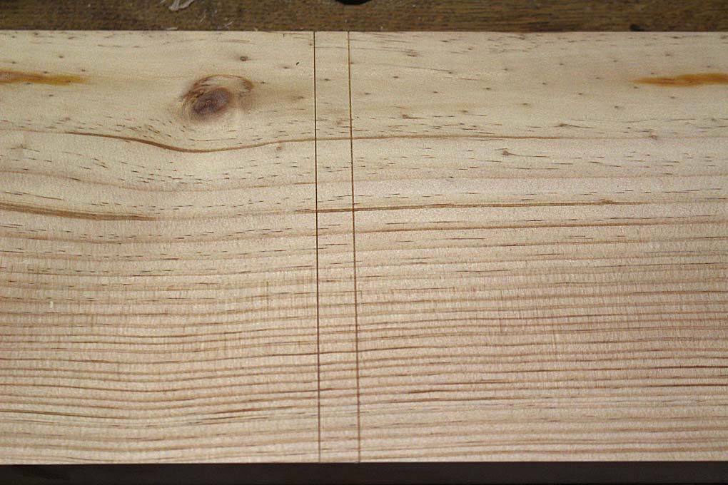To demonstrate the process, the board chosen was pine. This softwood will test the edges of planes across the grain. It is vulnerable to spelching at the sides and exit of the dado.
