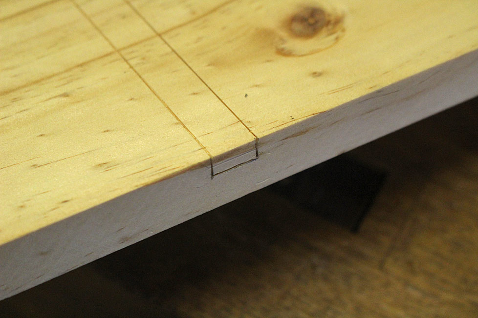 Below is a glimpse of the dados cut, and the lines scored for the Stanley …